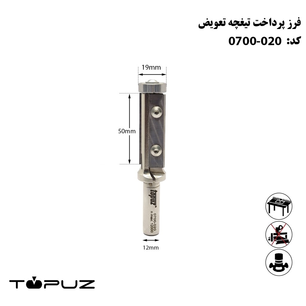 قطر 19mm کارگیر 50mm شفت 12mm . فرز کاری چوب های سخت و ام دی اف تا ارتفاع 50میلی متر از قابلیت های این محصول می باشد.و قابل استفاده در فرز و اوورفرزهای با شفت 12 می باشد.