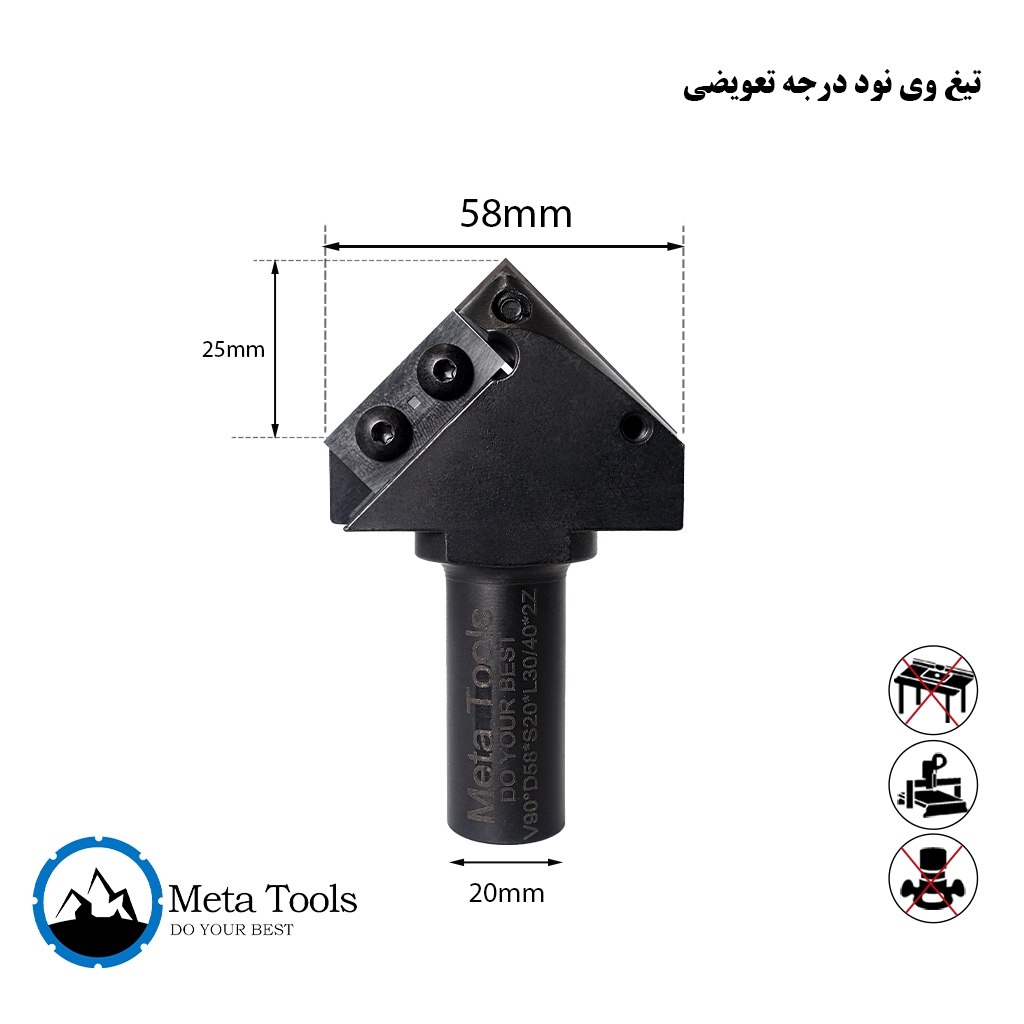 تیغ وی نود درجه تعویضی محصول شرکت متا چین بوده و ابعاد آن به شرح ذیل می باشد.