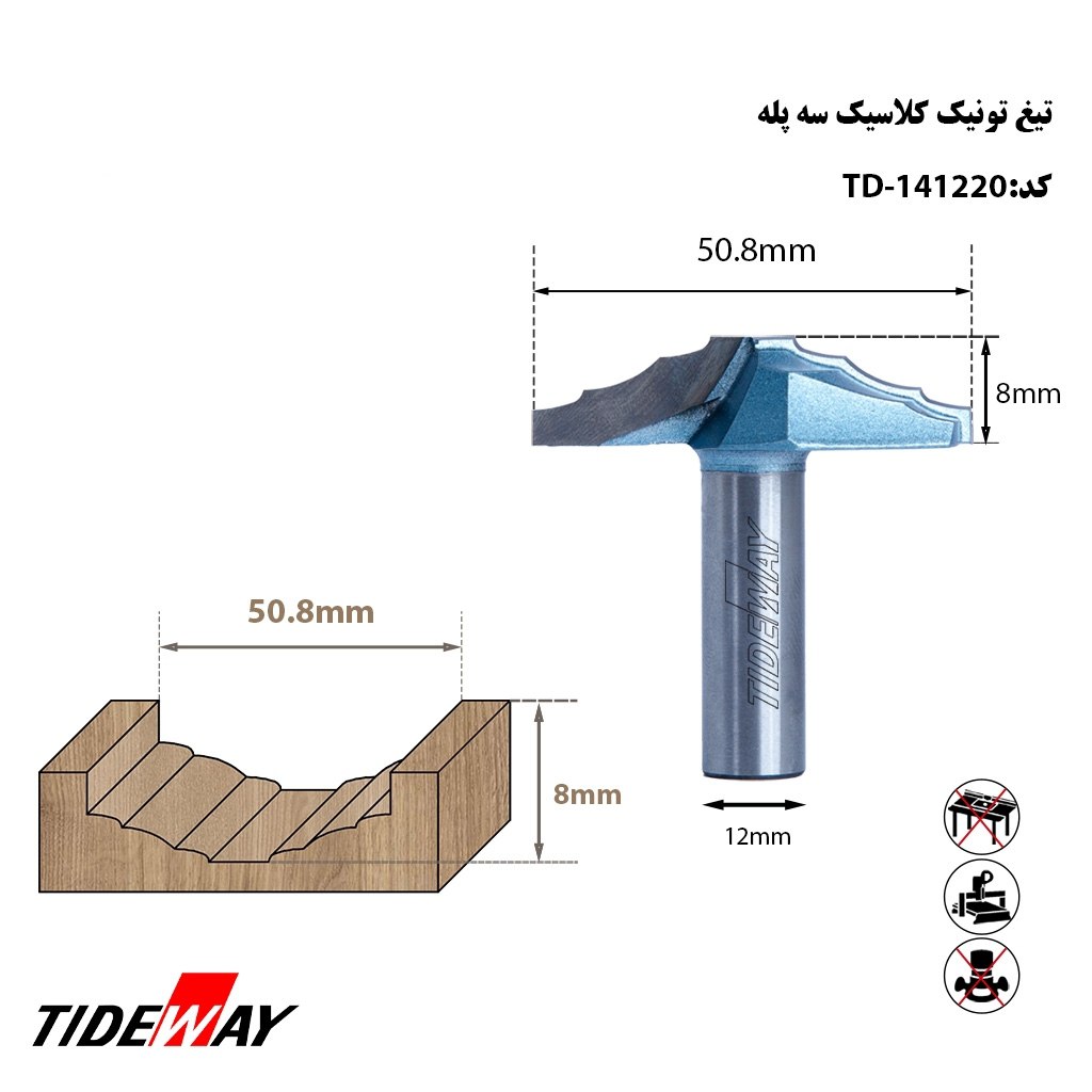 تیغ تونیک کلاسیک سه پله کد TD-141220 یکی از پر کاربردترین تیغ های سی ان سی جهت فرم دهی درب های کابینت و درب های ورودی می باشند. این تیغ در سایز ها و اشکال مختلف بسته به سلیقه تولید کننده و مصرف کننده یا خریدار تولید و در دسترس همکاران گرام می باشد.
