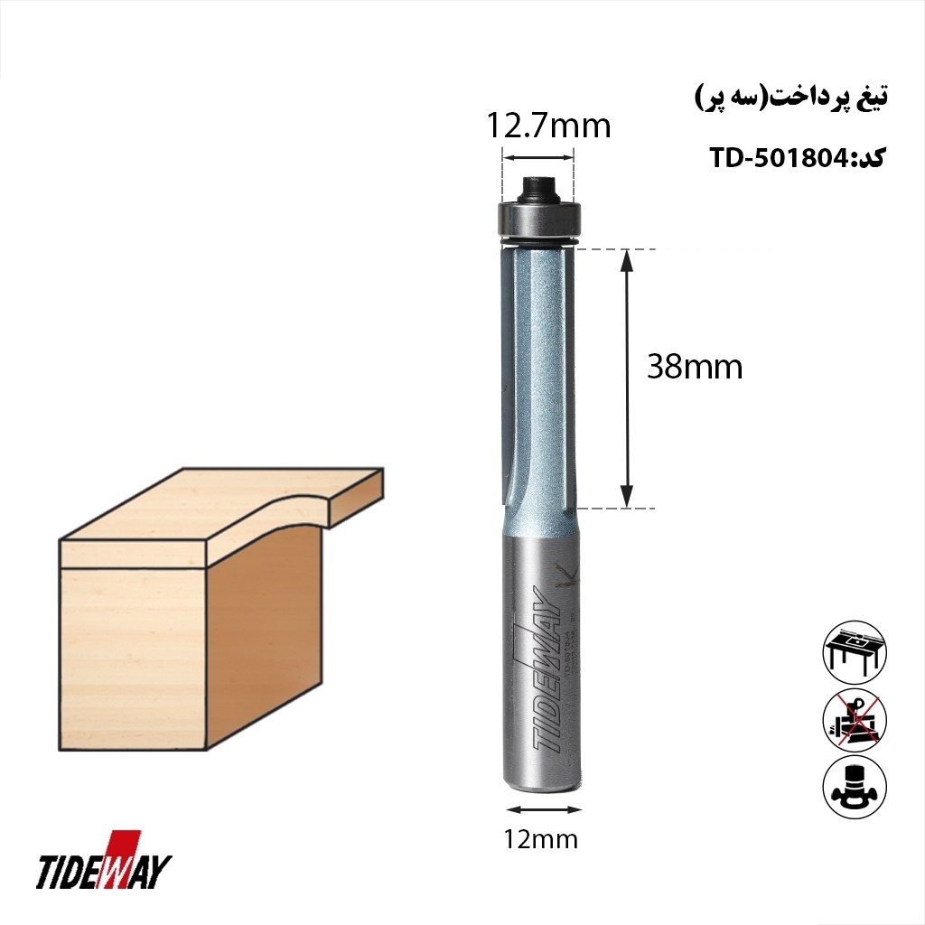تیغ پرداخت بلبرینگی شفت 12 عرض 12/7 کارگیر 38 ابزاری تخصصی برای صافکاری و فرمدهی لبههای چوب و MDF است که در کارگاههای نجاری حرفهای کاربرد گستردهای دارد. این تیغ با طراحی دقیق و استفاده از بلبرینگ، امکان حرکت روان روی سطح کار را فراهم میکند و به نجار اجازه میدهد تا لبههایی تمیز، بدون شکستگی و با انحنای کنترلشده ایجاد کند.